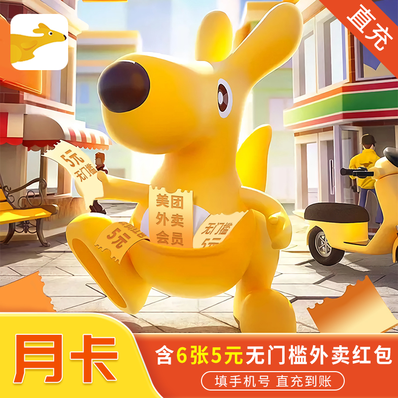 【券后8.8】美团外卖会员月卡 含6张5元无门槛外卖红包 填手机号